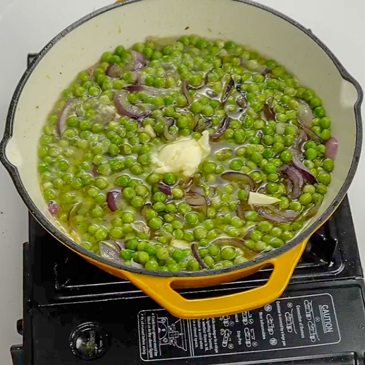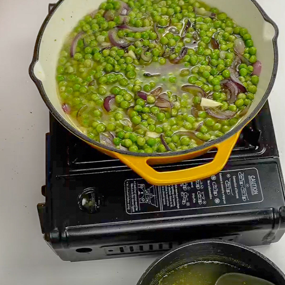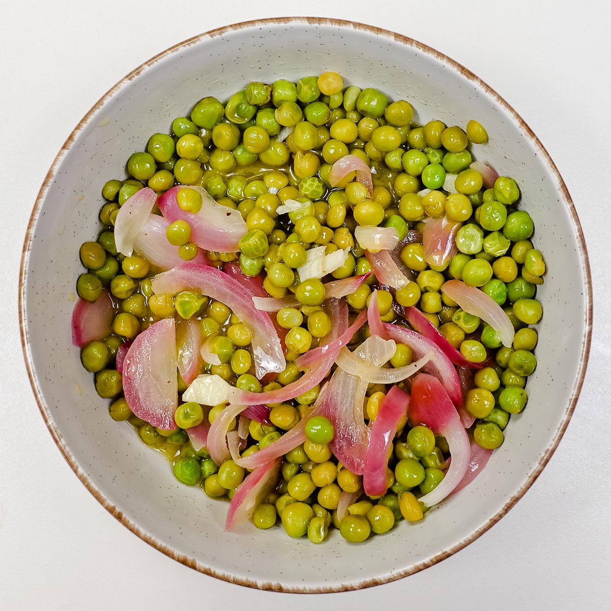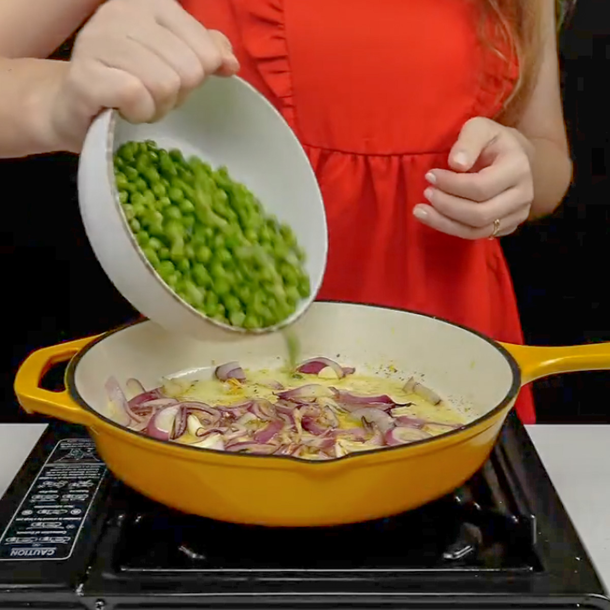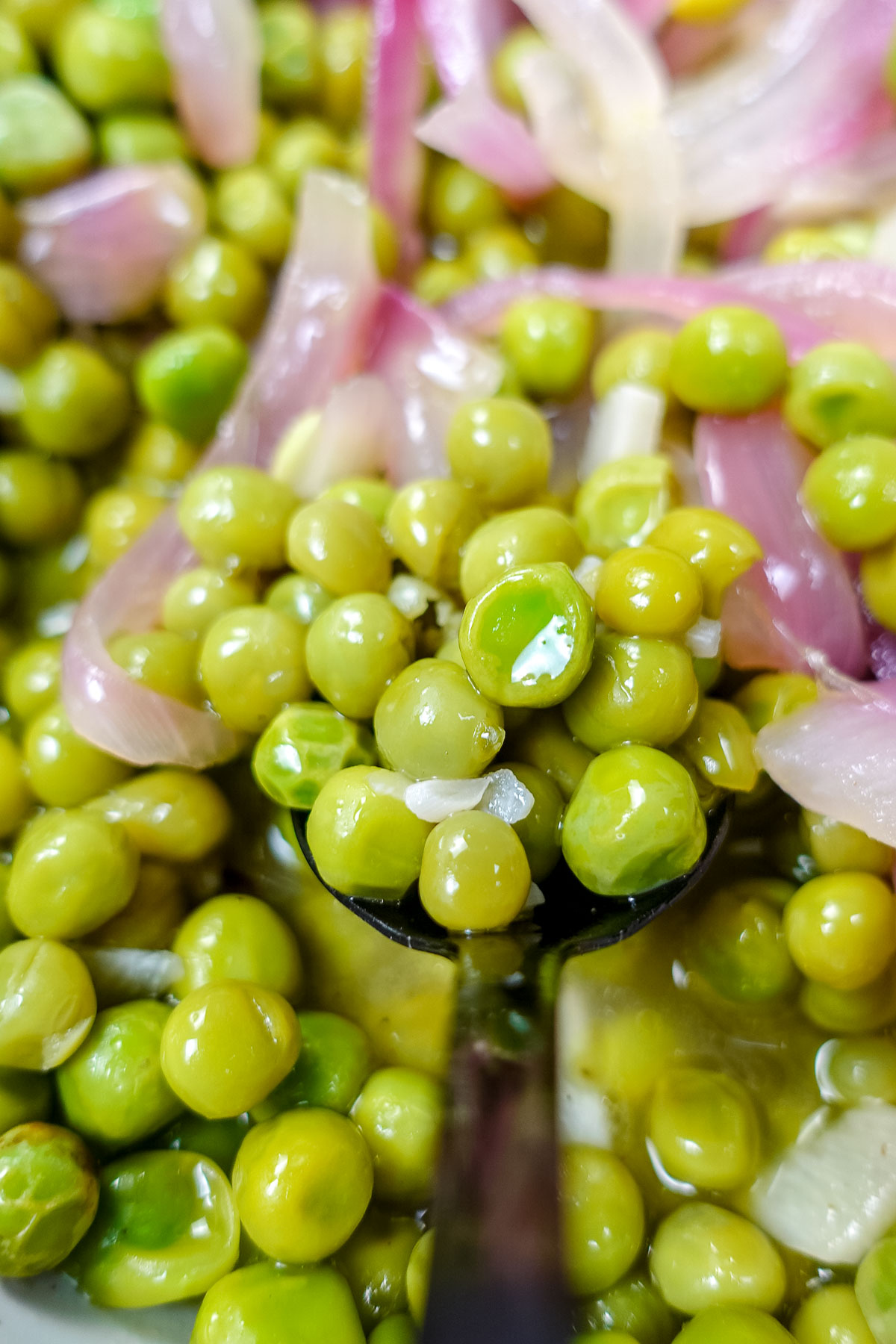 - Cook the red onion slowly until soft and translucent; avoid browning, which can overpower the peas.
