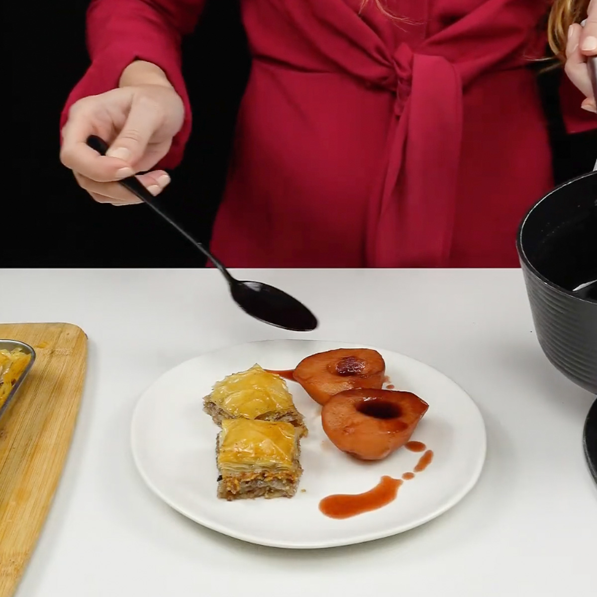 Absolutely. Port Wine Poached Pears can be a sophisticated centerpiece for a dessert course in a multi-course menu. You can serve this dessert for a romantic dinner, or a festive holiday spread. I served these pears with apple baklava. You can watch the whole Live stream and see how I make it.