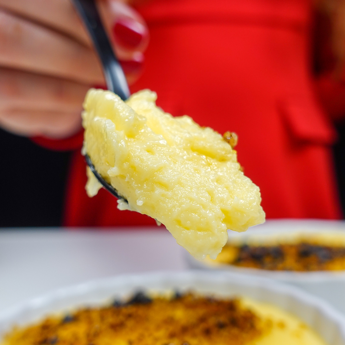Caramelized sugar gives a nice crunch when trying a spoonful of this delicious custard cream dessert.
