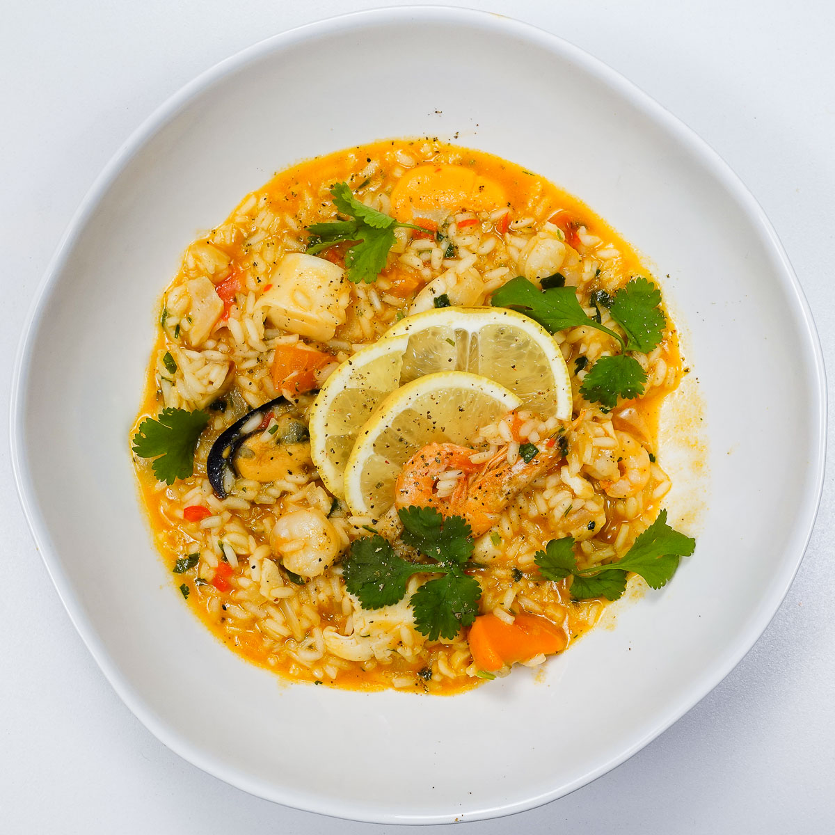 When reheating, we gently warm it on the stovetop with a splash of stock or water – this keeps the rice from drying out and prevents the seafood from overcooking.