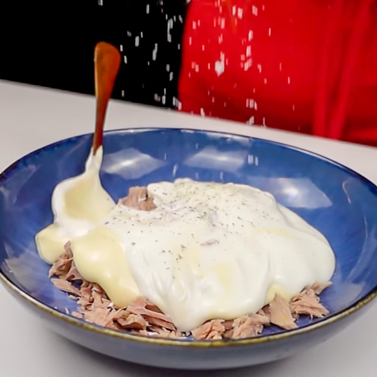 Mix all the ingredients until well combined. Season the tuna dip with salt and pepper.
