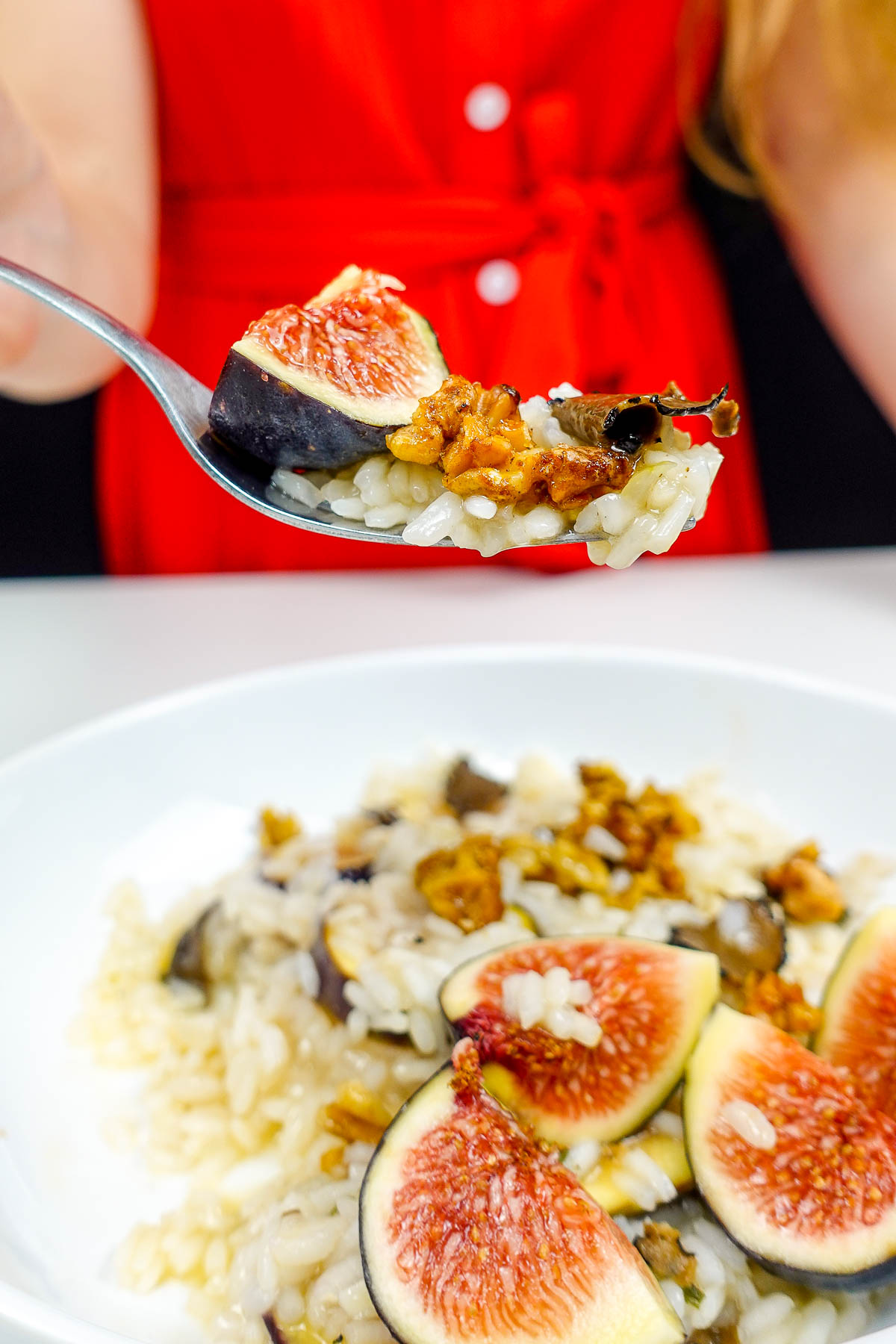 - Sweet figs and crunchy walnuts should enhance risotto flavor.