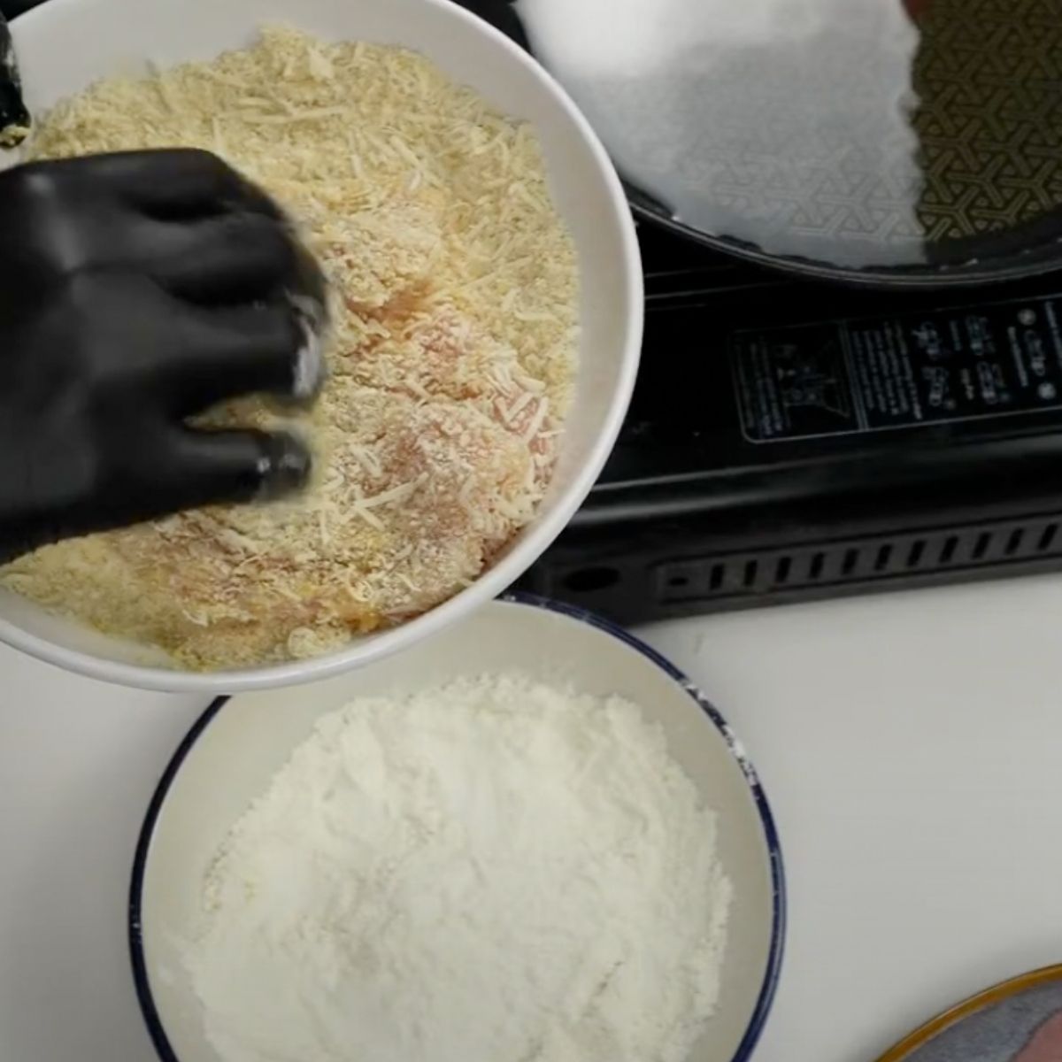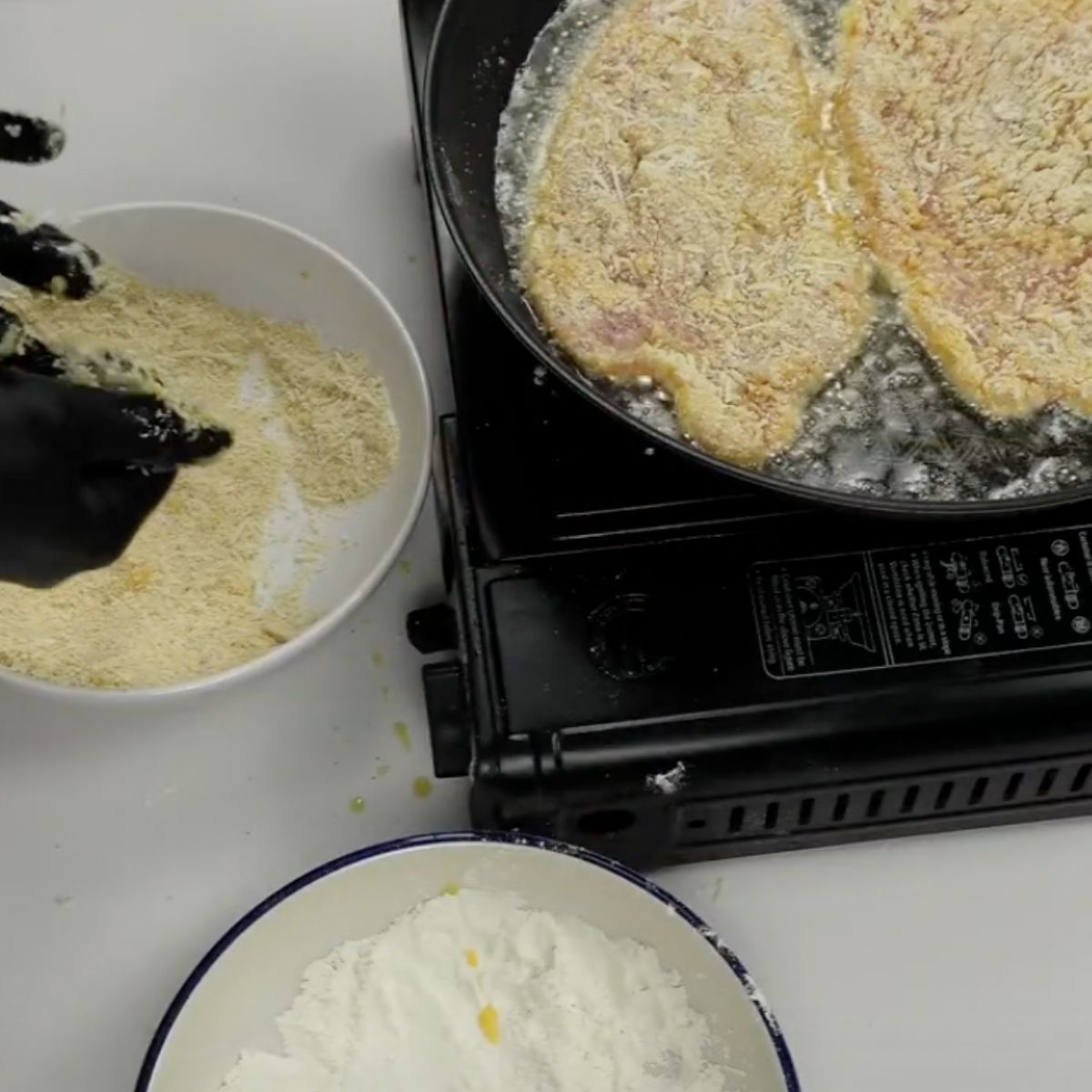 If you’re avoiding regular flour, almond flour or crushed rice crackers can replace both the flour and breadcrumbs.